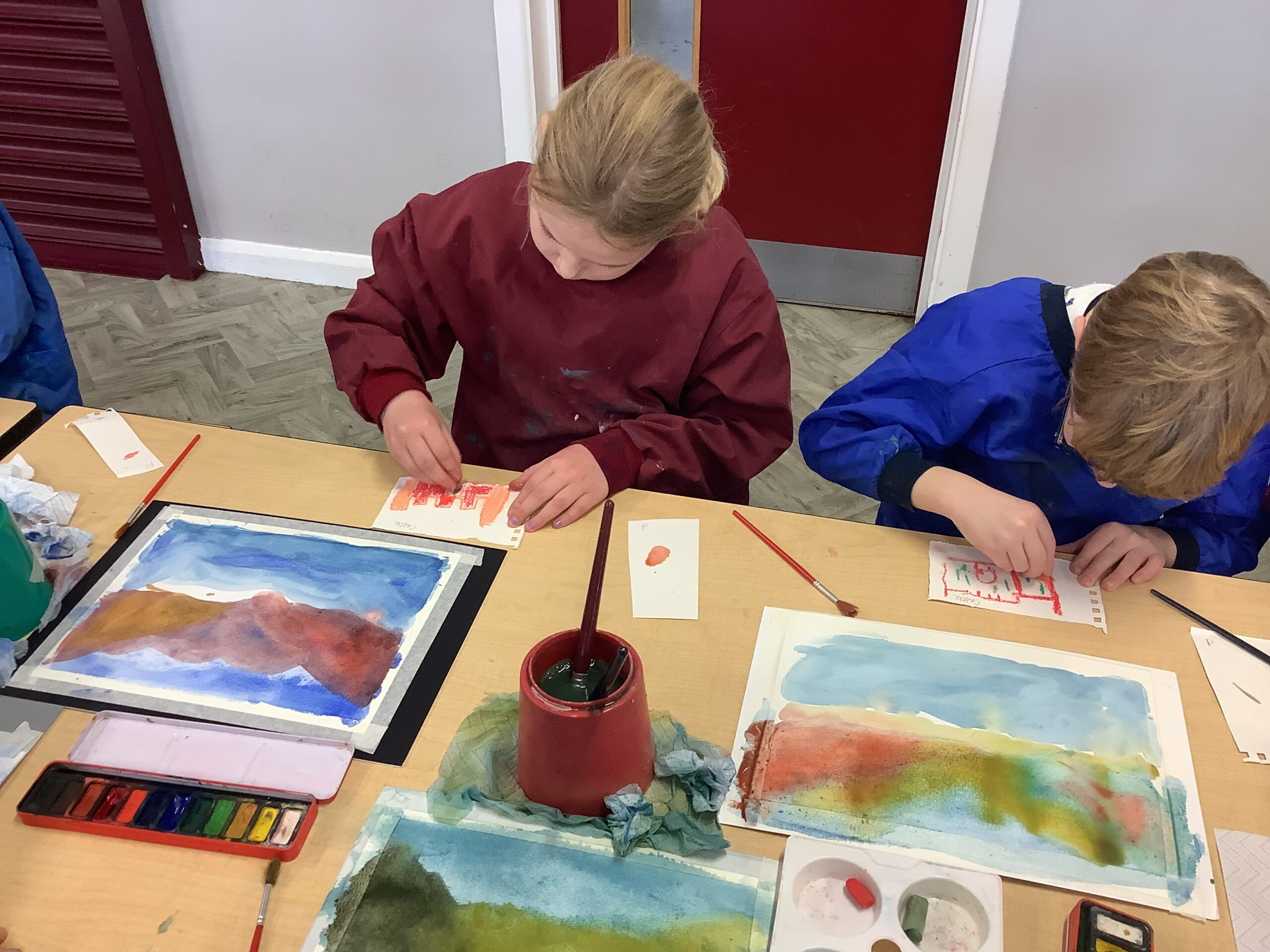 They learned how to create tartan by weaving their own designs on paper and finished the day with a masterclass in painting a Scottish scene in watercolour, using oil pastels to superimpose a castle onto a mountainous lochside.