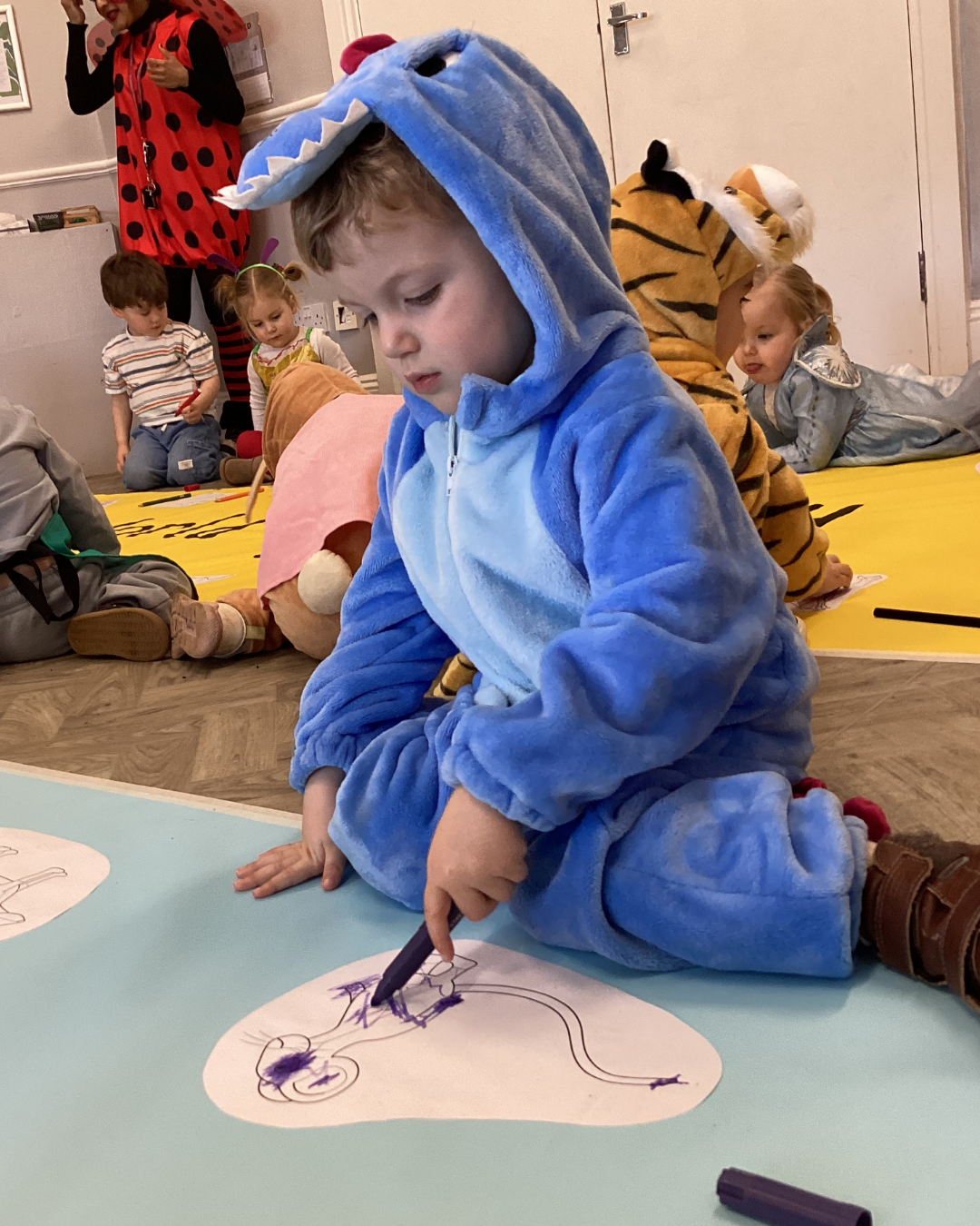 In Pre‑Prep, children dived into The Big Draw, showing off some brilliant artistic flair, before sharing stories with their reading buddies. Simon Mole also spent time with Years 1 and 2, plus a special visit to Reception, who are currently enjoying his book ‘A First Book of Dinosaurs’.